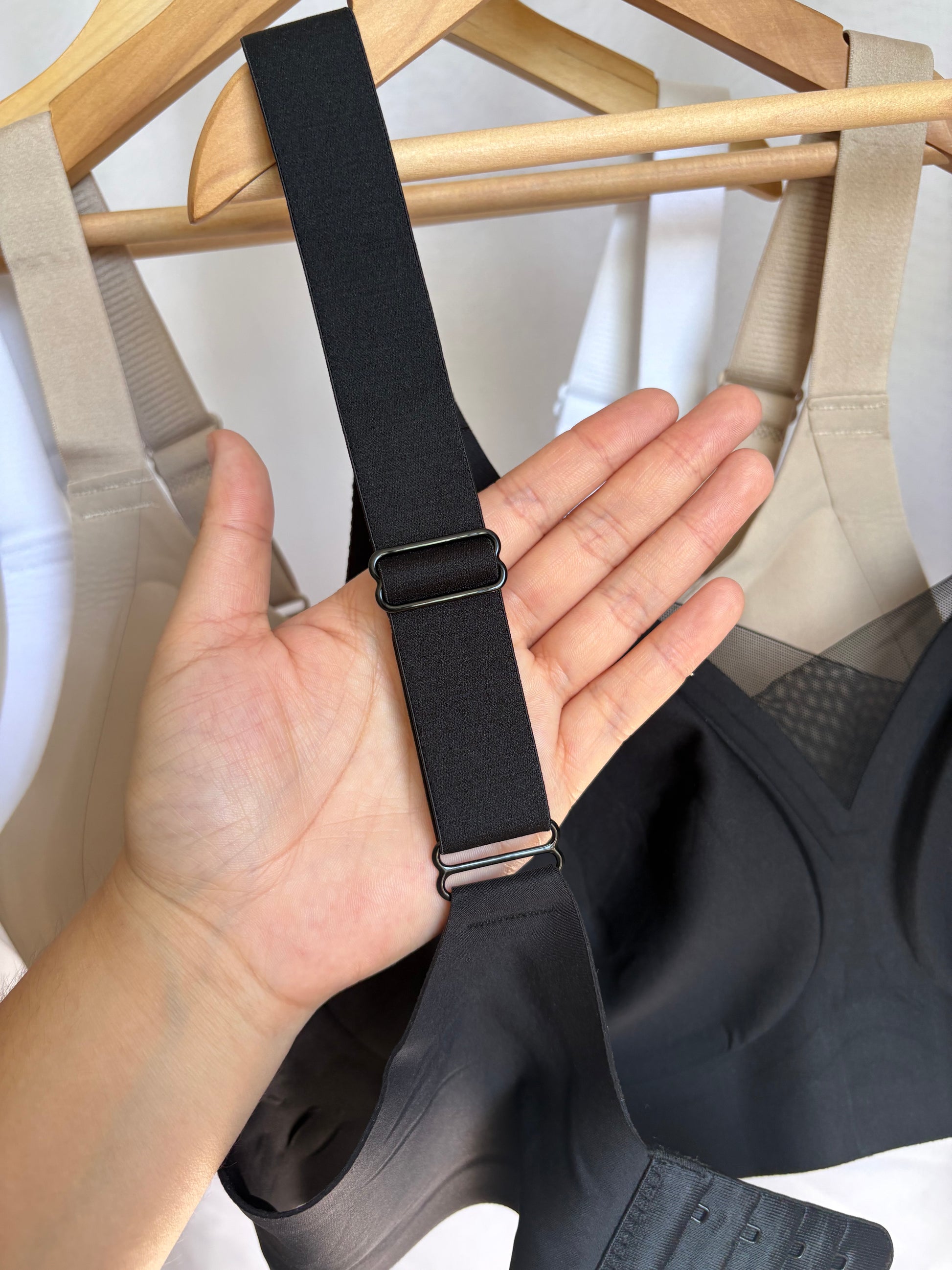 Su escote en V estiliza el busto de forma natural, mientras que los tirantes anchos brindan mayor sostén y alivio en hombros. La tela es suave, flexible y respirable, perfecta para sentirte libre pero contenida al mismo tiempo.