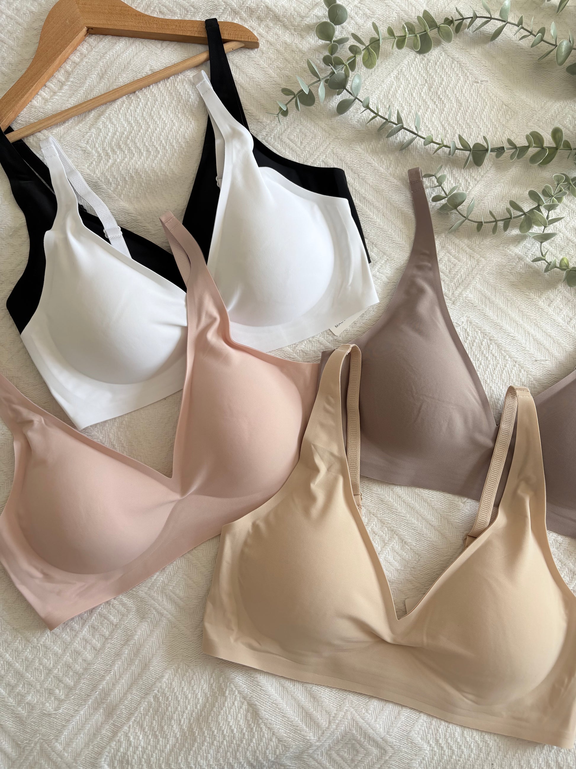Preciosa Bralette con escote rebajado en V , relleno removible , tirantes ajustables y broche trasero. Un básico y en colores preciosos! La tela es suave y ligera .